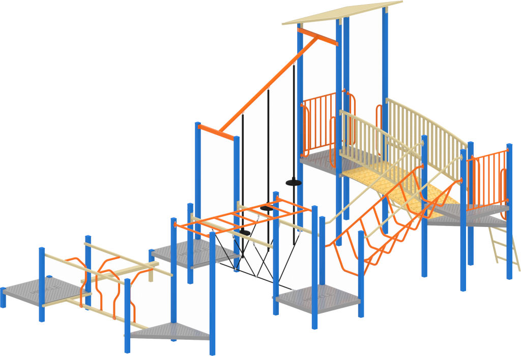 LIB-165 Combination Unit A dynamic, ninja-style obstacle playground designed to challenge strength, agility, and coo...