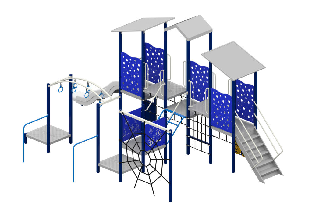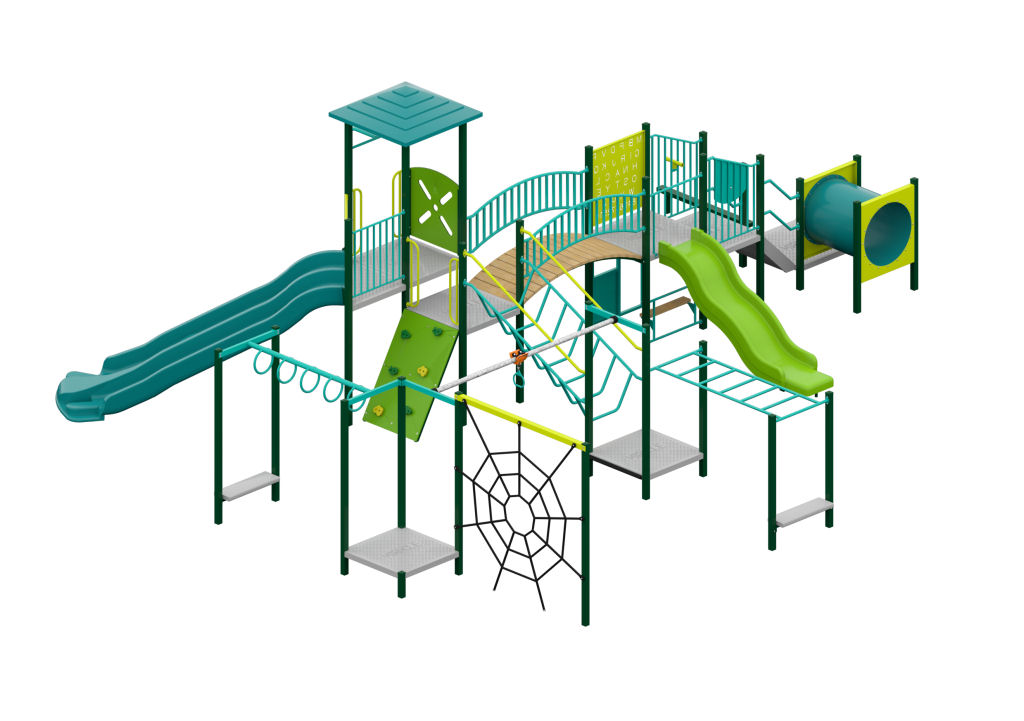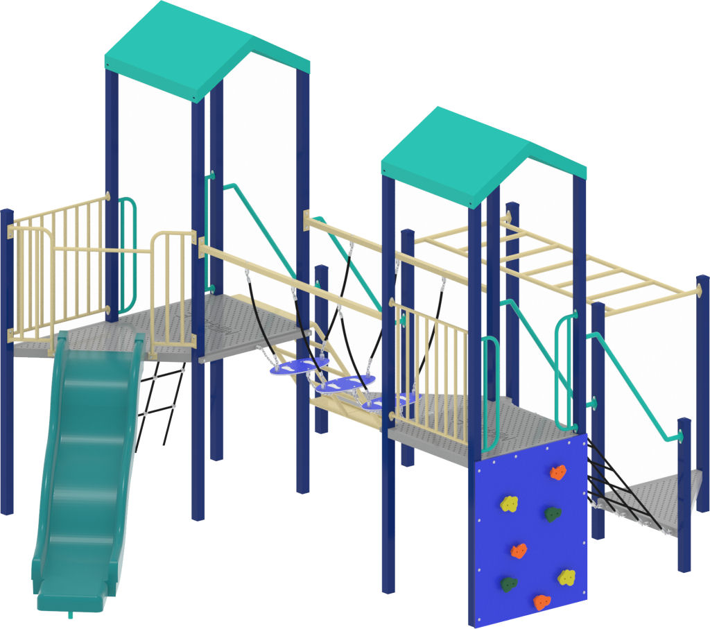 LIB-256 Combination Unit A compact, multi-tower playground designed to encourage movement, coordination, and social ...