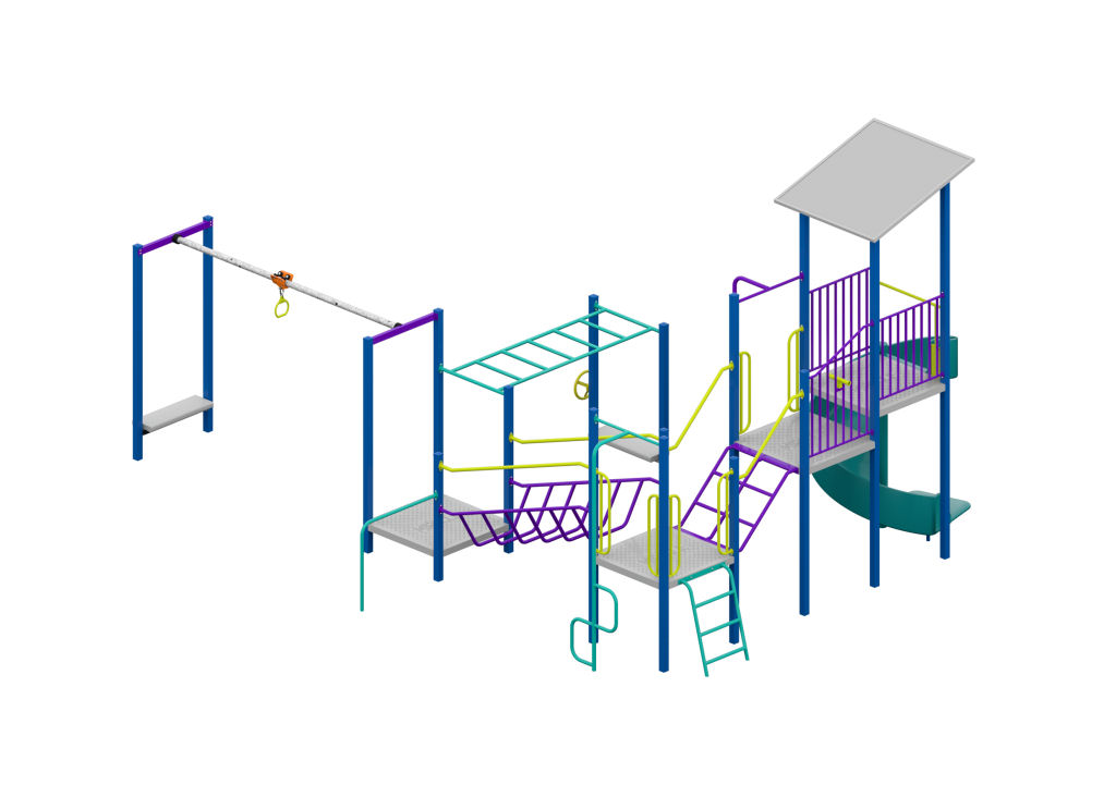 Featuring elevated platforms, overhead challenges, and varied access elements, this playground promotes coordination, endurance, and social interaction while supporting continuous play flow.