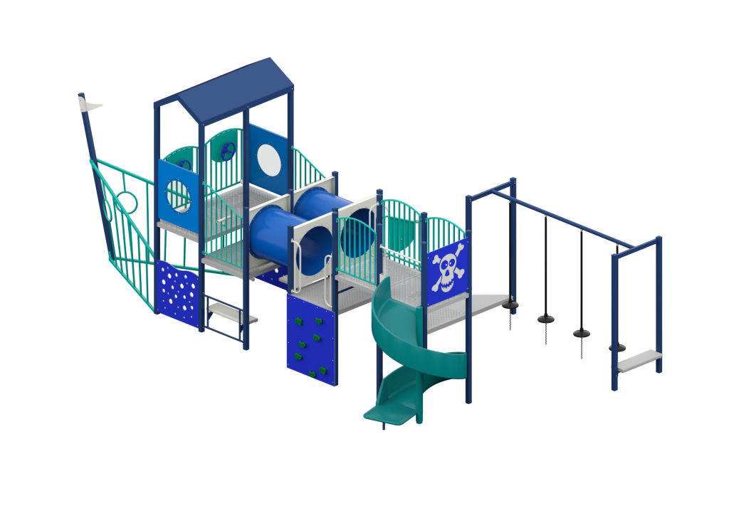 LIB-137 Combination Unit A pirate ship-themed playground designed to inspire imaginative adventures while delivering dynamic, active play.