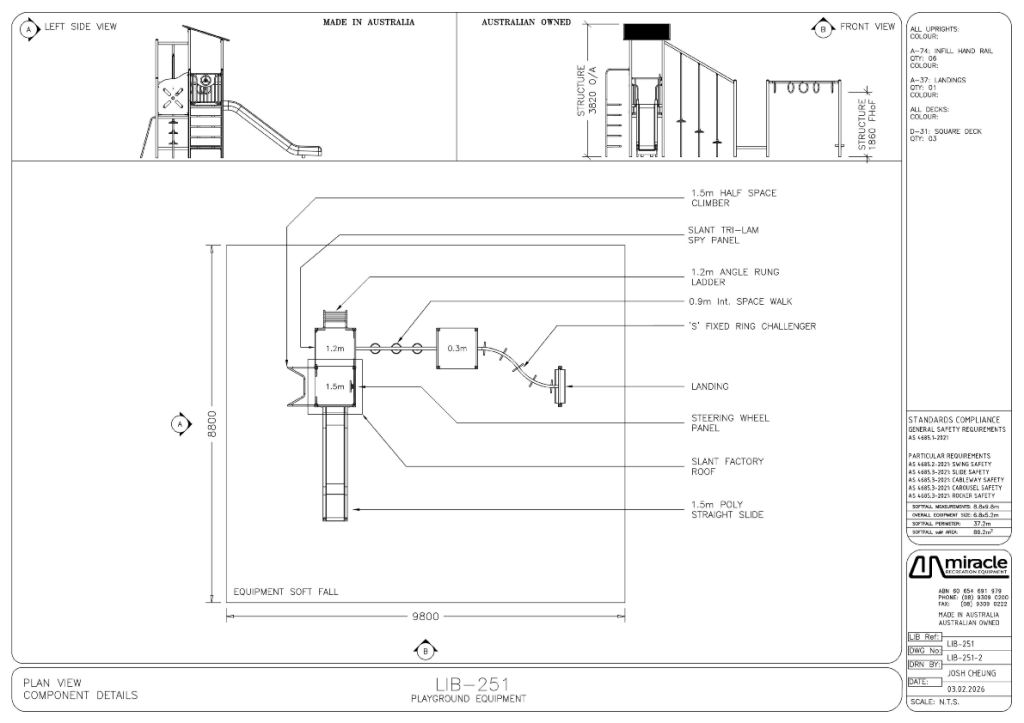 THIS PLAYGROUND DESIGN IS COMPLIANT TO AUSTRALIAN STANDARDS AS4685